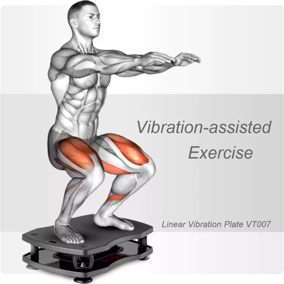 Squat is our top recommended exercise to perform on a linear vibration plate. Vibration-assisted squats can train the muscles surrounding the knee joint more effectively.